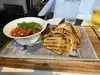 We stopped here for a quick bite before a concert and were pleasantly surprised with a flat bread crust pizza laced with Parmesan cheese. It was topped with chicken breast, avocado , feta cheese, cilantro, fresh tomatoes and artichokes. Delicious! Definitely will return.