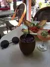 Sitting having a drink, waiting for food and lo and behold, what do we see??? A woman on the patio with her dog on her table!!! Really? How disgusting. And the waiter petting the dog! Needless to say, we asked for the check before we could eat and left. This is so unsanitary and I should call the health department on them! Don't come here unless you want to eat dog hairs and the germs that come with having dogs on the tables! Gross!