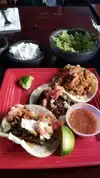 Cool atmosphere and a lively bar crowd. Service was excellent. Our food was ready much faster than anticipated. We started with the Chicken flautas which were stuffed full of goat cheese and chicken. Delicious and perfectly crispy. We also had the shrimp tacos and fish tacos. 3 tacos each packed full of grilled shrimp and fish, slaw and pico de gallo. Muy Bueno!