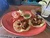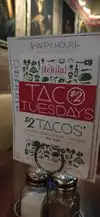 We fancied something spicy so researched this place . It was what was called taco Tuesday , three tacos for three dollars . Three meat filled tacos with veg and spicy sauce . We opted for the chicken , the steak and the pork . Very very nice and finished off with nachos and wine . Well worth a visit