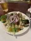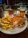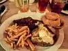 Stopped in for lunch and was impressed with the old school interior with its brass and oak Bar and private dining booths. We had the Bison Burger with Onion Rings and a Black and Blue Steak Salad. The burger was very good and the onion rings were hot, huge and delicious. My salad was a little less impressive but still good. I would have like the steak to be chopped as it was hard to cut in the bowl and my onion straws were not very warm. We were sat right across from the open kitchen which was interesting but also noisy. We would definitely return.