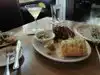 Food was very very good I got the bistro burger came with delicious potatoes w/bacon small bowl of fruit liked it a lot even thou the meat was over cooked . My wife got lemon veal w/over easy egg on top it was even better then my burger the only problem was really the server was tipsy and had a hard time seperating the check took 4 tries to get it even close to right was very frustrating