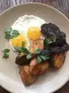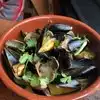 Yum! Mussels and clams steamed in a wine/butter/herb sauce, and half chicken with a lovely vegetable mix. Really tasty
