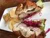 The place seems to be full when we try to grab lunch in this area. We stopped early this time and could try their menu. Soup of the day was an asparagus one, this particular batch was tasteless, salt was distinctive in it but to call it asparagus soup would be an exaggeration. Pasta with mushrooms, grilled asparagus was delicious and my husband enjoyed his Mediterranean sandwich. The menu looks good and we might give it another try.