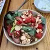 Delicious healthy food. A little on the pricey side but well worth it. Every dish is a win here. Love the ambiance and friendly staff members. The roof in the summer is a definite must. Great location.