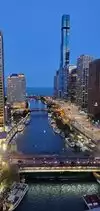 We ate in the evening on the rooftop terrace 16 the meal was delicious and the waiter was very friendly 👍. The view is beautiful 🤩the illuminated buildings the Chigago River with its illuminated boats up to the mouth of Lake Michigan 👌au top. I will keep a great memory of this evening 🌌