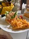 The lobster club sandwich is a work of art! It's huge, and able to split. I loved it. The avocado and crab top off the taste of this sandwich. My husband got the Tuna Poke Bowl, which was enjoyable.