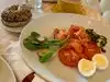 My wife's salad with grilled salmon was smelling. My clients ommlet was do tiny that he made a comment " is it made of quail eggs "