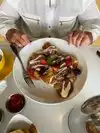 Had breakfast of steak and eggs. Steak was done a perfect medium rare. Smoothie was delicious. Nice view when you sit by the pool on the terrace. Service was wonderful. Reasonable prices too. This is one of my favorite Vegas restaurants.