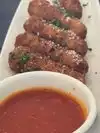 Between my husband and I, we ordered the kids' menu penne marinara, bruschetta, and chicken roll. We had a loaf of complimentary bread that was delicious. We ended up using some of the bruschetta topping on our pasta/pizza rolls, which was excellent. Everything was fresh and delicious, and the portions were very good. The restaurant was very clean. The service was great for most of our visit.