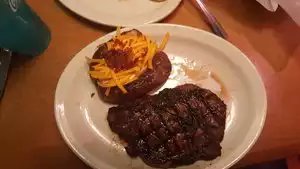 I had the Fort Worth ribeye steak potato with butter and sour cream and green beans was wonderful and the tea was great and the service was great people that work their was friendly and place was clean in side and and restroom was clean james