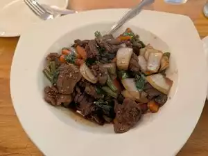 I'm not an expert on Asian food, but my lunch was delicious and very reasonably priced at about $6.50 for soup or a small salad, crispy roll, and entree with steamed rice. I enjoyed the ginger chicken while my companion thought the green curry was yummy and not overly hot. My criteria for the best place to eat is good food at a great price, and that is what this is, at least for the luncheon special.