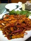 My favorites at this restaurant are Garlic Shrimp (a Chinese dish) and Shrimp Tempura (Japanese) appetizer. I also tried a Thai stir fry dish that was tasty but very spicy as Thai food usually is. The garlic shrimp dinner portion was very small. The tempura app was a good price. Although I have only eaten dinner here, they have a weekday lunch brunch that is supposedly a very good deal. Look for their frequent Groupon deal which may apply to dine in dinner only.