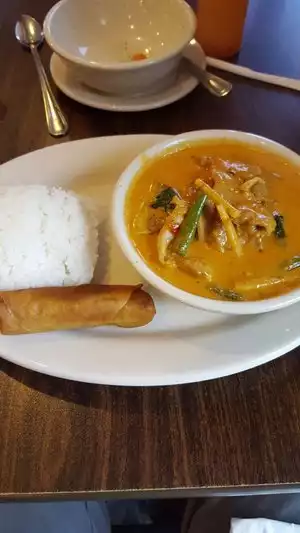 We enjoyed the delicious food at this local restaurant. We ordered off the lunch specials menu and found the prices very good. The meal included soup, rice, spring roll and iced tea. We had pad Thai and red curry with chicken. Both were excellent. A side of rice was only a dollar. Plenty of parking. I'd give the restaurant 5 stars except for the wait staff. None of them were smiling and our waitress wasn't what I'd call cordial or helpful. Aside from this, the food was a good value.