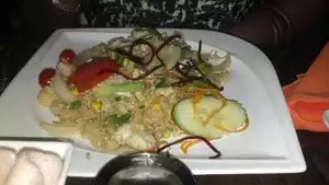 Pleasant environment, and many dishes can be made vegetarian. Very nice presentation as well. They are also glad to adjust the level of "heat" in the spices. This was a first visit, and I would be glad to return.