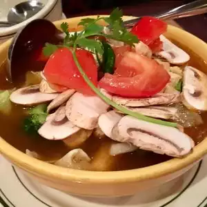 Delicious Tom Yum with lotsa spicy broth and veggies. Generous portion too! Ate it 3 evenings in a row. Quick service too.