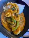 Place is TINY. I was there around 2pm, no line. Panang Curry had good flavor. Perfect amount of spice for me. I asked for medium spice. My meal contained very few vegetables; mostly some onion (which had good flavor) and about three slices of green pepper and lots of sauce and rice. I had it with prawns which had good flavor, I received 6 of them. Average size portions. My clothes smelled like a fast food restaurant after I left. I was seated at a bar next to strangers although there was other open seating. There were about 5 tables which look like they could seat 2 each. Meal cost me $11-12. I was not offered dessert; which I would have ordered if offered.
