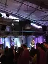 At 6:30 on a Wednesday, the parking area was full. We were lucky to snag a spot on the grass, up over the front curb. (We worried about it but none of the cars on the grass were towed or ticketed.) You stand in a fast-moving central line to order both beers and food. You get a sign on a talk stand, and they deliver the food to your seat. Seats are long picnic tables with benches, common shared tables, and tall stools along the walls and bar. They have pizzas, calzones, and sandwiches. Pizza crust was nicely thin and chewy, not soggy. The specialty pizza varieties are unique -- we had one with quail and soft cow cheese. It was excellent. We sat up near the stage, and really enjoyed the talented Warren Hood band and some amazing swing dancing.