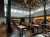 The good - Plenty of varied spread-out space for dining, drinks, fresh air, or finding a quiet corner. Tidy restrooms. Really, the best part was the open air spaces. The not so good - While the staff near the food and bar were kind and attentive, there were not many. This made for long lines and slow service. Glasses and plates were chipped. Some areas can feel very crowded with the combination of lines and seating overlapping. Biggest turn off for me was the checkin. According to the desk agent I did not appear happy enough and he felt the need to comment on it multiple times. It’s not really worthwhile to go out of your way to visit this one.