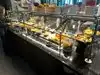 Only one working coffee machine. Food not restocked quickly. No tea bags. Two food station fridges not working. Men’s bathroom had broken toilets.
