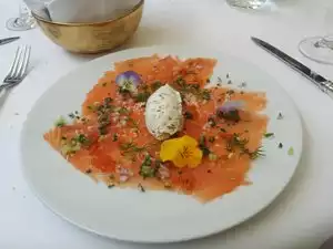 Good food and great atmosphere to spend your afternoon . the surrounding area is picture perfect and you can stroll around the hotel garden before or after .