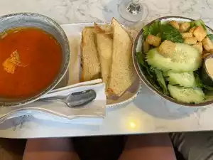 5 of us arrived from the airport, tired and hungry. We were able to choose a nice variety of items. My three-cheese grilled cheese sandwich and tomato soup combo was fantastic. They are able to accommodate peanut allergies too which is great. Nice options for a quick breakfast too. My fruit and yogurt bowl was good, just didn’t like that it came in plastic (to go style).