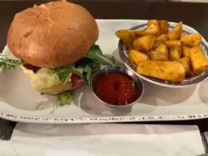 So it's not fancy-dancy, but you get a decent meal and a reasonable price. We shareda starter of hummus and follwoed that with a couple of burgers. Good burgers, cooked properly. Service were good and the staff (especially Omar) lovely. Strainghtforward no-frills dinner Easy after a long day!