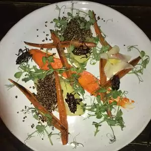 This is a tough one to review. The service was good for the most part but also a bit slack at times, similarly the food itself was excellent on some dishes but below par on others. I liked the margaritas, they were extremely strong which I take as a positive. The addition of insects into some of the dishes is a cool idea particularly as they aren't advertised as the main attraction, just something to increase the flavor and texture of certain plates. In a World where food is becoming increasingly more scarce, insects may well play a part in combating this global problem and by using them to improve a select few dishes whilst avoiding making a sideshow out of their use should be applauded. I sat in the back terrace and whilst very pretty, the music here is quite loud so naturally conversation was as well, the end result being quite a noisy dining room. I would recommend anyone to visit, I'm just not so sure that I would return.