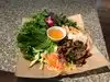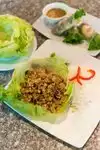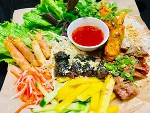 Excellent quality Vietnamese bun rice noodle bowl. This is the first time I've seen it come with la lot beef (ground beef wrapped in betel leaves) - YUM!. Very clean with a pleasant atmosphere and wait staff. We'll be back!