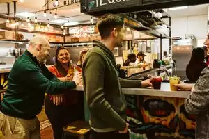 Is this place on its way up? Or on the way down? It's difficult to tell. About half the stalls were open when we were there at lunch time. Even though there were signs of previous activity in empty stalls I couldn't tell if they were in the process of opening up or closing down and moving away. Breakfast time is even worse- just one coffee shop open at the front. Very cool concept- hopefully this place is on it's way up and is filling with vendors and not the other way around!