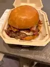 I happen to enjoy fancy food courts because rest stop food courts make me nauseous and I’m not a big fan of fast food!! I went to a fancy food court in Fidi called the Tin Building and made a good joke in my review!! If you want to read it I am sort of selling my own reviews for your enjoyment!! I was walking around yesterday looking for a Wawa and my eyes came across this place and I made a very good decision to try it!! I went to the first stand in front of the door which served burgers and sandwiches and things!! I got a beautiful burger with bacon and cheese and it came out fast!! They had machines to order from which I always enjoy because I enjoy being anti social and not ordering with cashiers!! There was a lot of different food for all the culinary palates so all of ya people should come!!