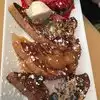 Went with a client for brunch/lunch Very unusual entrees, we had a French toast flight as appetizer it was five pieces of French Toast each with a different topping…apple cinnamon, fresh strawberries, fresh blueberries, lemon chiffon and pecan pie! It was truly amazing best ever had. Not only was there a topping but bread was infused with fresh fruit batter! For lunch we had Nutella banana pancakes and the Chicken and waffles, waffle was sweet potato The whole adventure was amazing food, service and ambience Give it five stars prepare for a wait on weekends and they also have outside seating and garage door windows for al fresco dining A must go in Lincoln Park