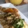 I ordered a hamburger with everything on including an fried egg excluding the the bun. No problem...it was easy and delicious. The french fries are plentiful and good tasting. This is an old-fashioned deli with formica tables. Don't expect anything fancy but excellent food and very good service. It is a bit loud due to the metal ceiling but it's a really fun place to eat plain, good food. Outside dining is available.