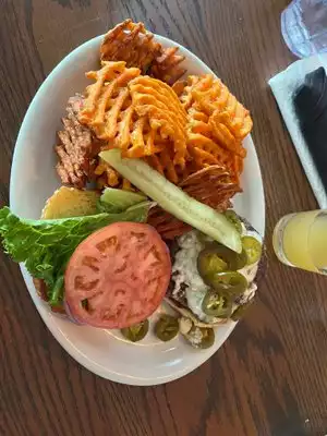 First off you seat yourself, just an FYI. There was no one to greet us or tell us that so we had to walk to the bar and ask. Once we sat it took someone about 10 minutes to even come over and take our drink orders. We were actually about to leave when our server showed up. So the start was a Little Rocky. Once that was out of the way things got a lot better. Our waitress recommended great options as we told her it was our first time eating there. The food was pretty awesome. My friend had the waffle fries and didn't like them. I think that was her only complaint. This is definitely a place that I would go to again.
