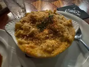 Old school funky Sinatra type vibe bar – love it! The drinks are very good – I would stick to happy hour in the bar. The steak dinners were not good – all were overcooked and not real steakhouse quality – all three times I have dined there. The filet medallions with blue cheese tasted ok but were very tiny pieces of filet and such, cooked well done as opposed to the medium rare I ordered. The prime rib was very dry and lacking flavor – it’s sad when you really need the auj jous just to eat it. The highlight of the meal was the baked potato, which we all agreed was amazing in that it was creamy and melted in your mouth. However, that wasn’t enough though to make up for the rest of the meal. I would never dinner eat there again but would certainly go back for lunch or happy hour. Side note - the booth were in was so high in the back that my feet didn’t touch the ground and the top of my legs were pressed on the booth. The most uncomfortable dinner I have ever had at restaurant. Again, stick to the bar and you’d be happy.