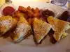 If you haven't gone on Saturday or Sunday at brunch for the Monte cristo then you haven't lived. This sandwich is an all timer in my book. The eggs and bacon deep fried with powdered sugar and raspberry jam are quite a combination. Try it at least once!