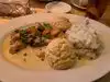 Good very bland, they advertise grilled chicken and bring it boiled,portion size are very large. Large menu, cheese cake was a nice frozen slice.