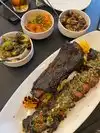 I had the Impala and Prawn. I’ve never had impala before. It was delicious. Tender, medium rare perfection and slightly sweet. My son had the Jerk Snapper which is a whole fried fish served upright on the plate. It was quite the presentation. Stuffed mushrooms and wings for appetizers, steaks and Karoo lamb were all delicious.