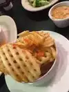 We saw it online and gave it a try. Drinks - two organic can drinks the menu drinks weren’t available. Appetizers- Spinach Artichoke dip with toasted bread, very delicious and light. Menu items; Radical Ruben sandwich; creamy thousand island dressing, sauerkraut not to tangy very good flavor. I had an order of Yucca chips but I didn’t like them. My wife had the Potabello mushroom and waffle fries she said it was very good. Our experience was very good and enjoyable.