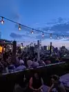 Rooftop located on the 15th floor of a building on the lower East Side with stunning views of down Town especially at sunset or at night. There are two areas outside which is pretty nice. On the other hand, cocktails are really not exceptional: many ice cubes and therefore very quickly aqueous, sometimes elongated with soda ... The music as often in New York is quickly deafening: it feels like a club (a club that exists but is supposed to be only on the 14th floor though) Awards are high for cocktails, especially if it makes you want to snack on something. Reservation required.