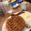 Had breakfast here today. The maple waffle and the ham omelet. The food was good, but the service was excellent! Our coffee cup was always filled and they were constantly on top of any need we may have had. Really nice decor inside too.