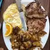 Every time I come here is always pack. So I decided to try again. This time it wasn't as busy as usual. They had the steak and eggs special so decided to try, since I love steak. Service was fast which is a big plus. Ask for medium well, but maybe I should off ask for well done. The steak was juice and tender but it needed more flavor. The potatoes were ok but to mushy for me. The bread was good nice and warm with flavor. My wife hag the waffles and they were excellent. I think is a miss and hit in the restaurant so I will come back and give it a try again.