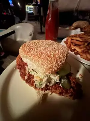 Great little bar throw back to the 90s quick and delicious food the Hot Chicken sandwich was awesome, fries on the little crispy side but i was full after the sando, really great quick service at the bar. The price point was also reasonable for the area.