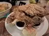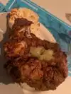 We were told this was the best fried chicken. We were stuffed after a full day of doing nothing except eating and walking! This was our last stop. We would have never known it was there if we didn't have a local with us. We were lucky to grab a booth but it was so loud. The DJ blasts music and it is almost impossible to talk to each other. There were also poor little fish in the wall that must hate all the noise. Not sure how they're even alive. The fried chicken was pretty good. 4 pieces and decently sized but the biscuits they came with were definitely on the small side. Overall the food was good but not something I would go out of my way for again.
