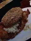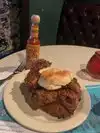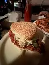 Visiting my daughter in Brooklyn and her boyfriend suggested we go here for the chicken sandwich. Glad we did! One of the best I have ever had. Hot (both temp and spice) and crispy. The “fabulous “ Manhattan was great and where else can you watch “Smokey and the Bandit” on an old “tube” tv. Great place!!!!