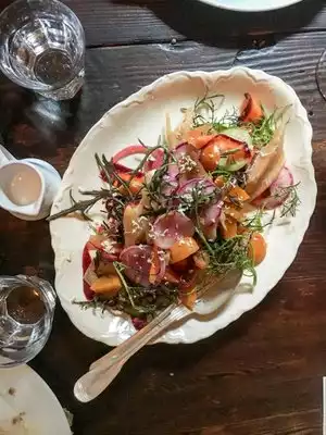 What a lovely experience, a restaurant that feels like you're eating as a guest at a lovely rustic home. All diners join together, a cocktail in the garden and then you all seat around communal tables and enjoy the range of dishes that just keep on coming. Too hard to find highlights in the food, and besides it's the whole experience that I'd recommend. If you're a foodie, you like meeting new people, and you want something special - then THIS is it.