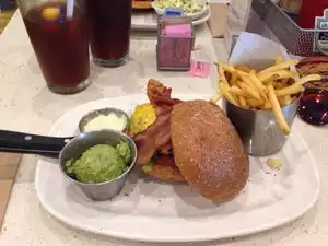 Yum, Yum this was the best burger i have tasted in a very long time. When seated at the table you are given a clipboard to start and build your own burger, you will not be disappointed at the choice on the menu. The meat was cooked to your own liking and very delicious it was, my only advise is go hungry as the portions are very big, we ordered fries as side orders to share with family and we wasted quite a lot. The staff were extremely friendly and the place was spotless and clean, the food was prepared all fresh and arrived quicker than what the server mentioned. We would certainly go back if we visit the states again.