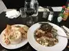 Food was only so so. Actually, the turkey and trimmings were pretty dry and definitely overpriced. Drinks and service were good, however. It was raining like mad outside. We had a nice window seat but the old single paned window was leaking onto our table.