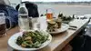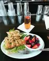 Sat myself at one if the closely spaced bar tables. Server took my order of eggs Benedict with spinach , smoked salmon and biscuit. Also had a side order of grapes and strawberries - no raspberries as originally told vi server. Drank local green tea. Delicious breakfast all in all!