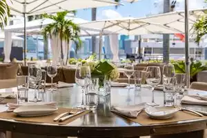 We were at The Deck Saturday night. Made the booking based on a friend’s recommendation and were very impressed when we arrived. It’s a great looking spot, on the water, skyline in the back, cabanas etc. Our issue was with the service, or lack there of, that we received. We were sat promptly at our table and then proceeded to wait, and wait for anyone to take our orders. After 25-30 mins I called over a waiter, as several of them had walked by our table a few times and asked him if anyone could take our drink order. He told me he wasn’t our waiter but could take the drinks. He then took all our orders. Drinks came about 20 mins later and our main courses were at least an hour after. And of course no cutlery which we had to flag someone down for. It really just spoiled our entire experience there. We definitely left feeling our table wasn’t as important as the cabanas as those had 4-6 staff flying around them with bottle service etc. They include a 20% service fee which we asked the manager to remove (he did). We did tip the waiter (who wasn’t our waiter but somewhat looked after our table). We felt bad but in all fairness the service was dire and we didn’t feel 20% was justified.